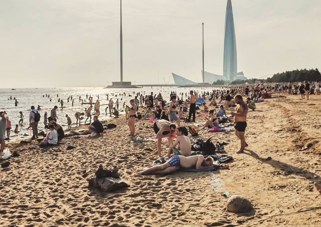 Рекордные температуры пришлись на выходные, поэтому многие пляжи — у Финского залива и Суздальских озер — были заполнены купающимися и загорающими людьми. Горожане освежались у каналов и в скверах, а в соцсетях сравнивали летний Петербург с Анапой и Геленджиком.