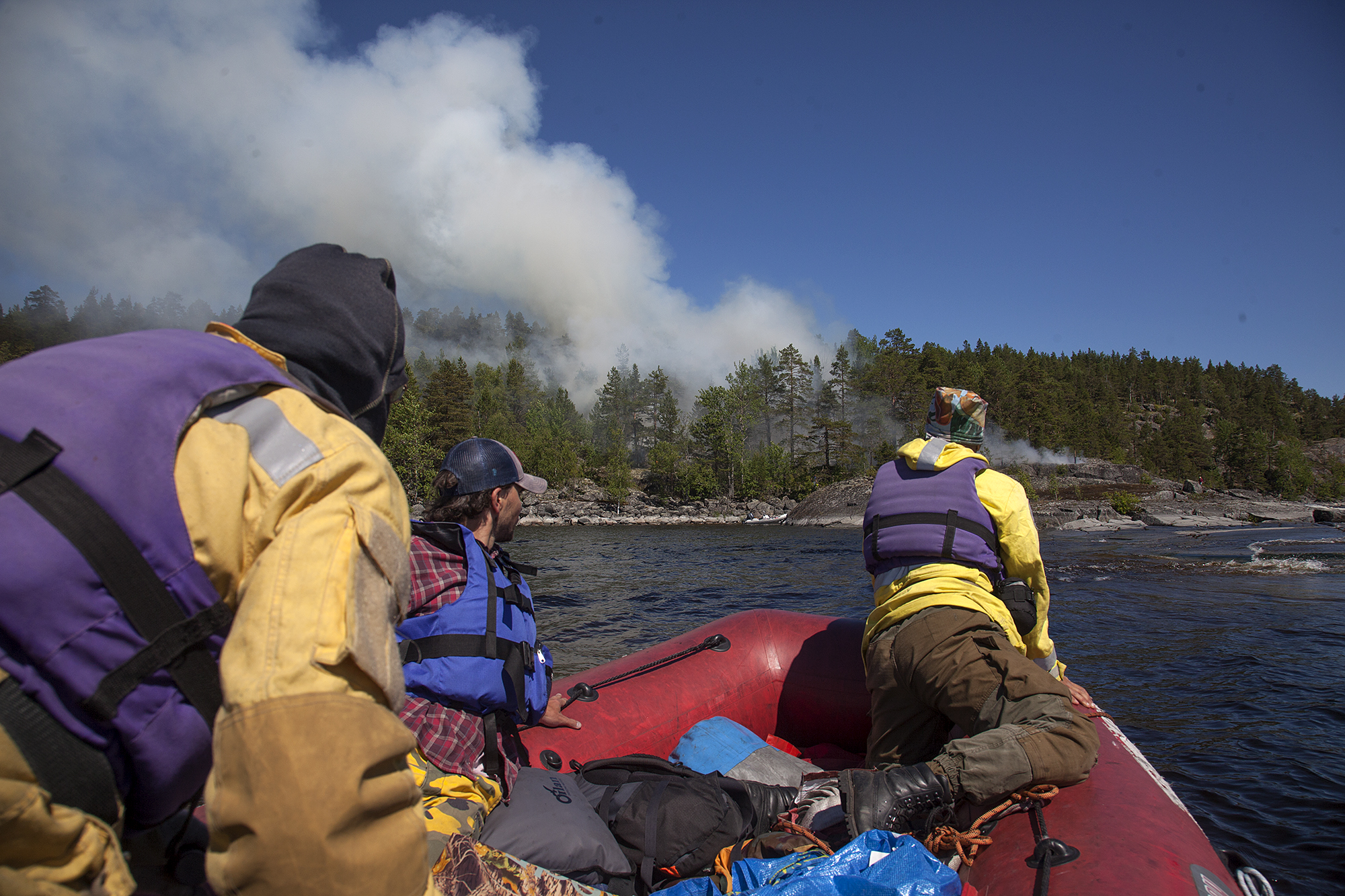 В самый пожароопасный период (июль — середина августа) мы дополнительно выставляем наблюдательные лагеря. Несколько человек живут на отдельном острове, более или менее отдыхают, но один из них каждые 15 минут осматривает горизонт из бинокля в поиске дыма. Это аналог наблюдательной вышки.