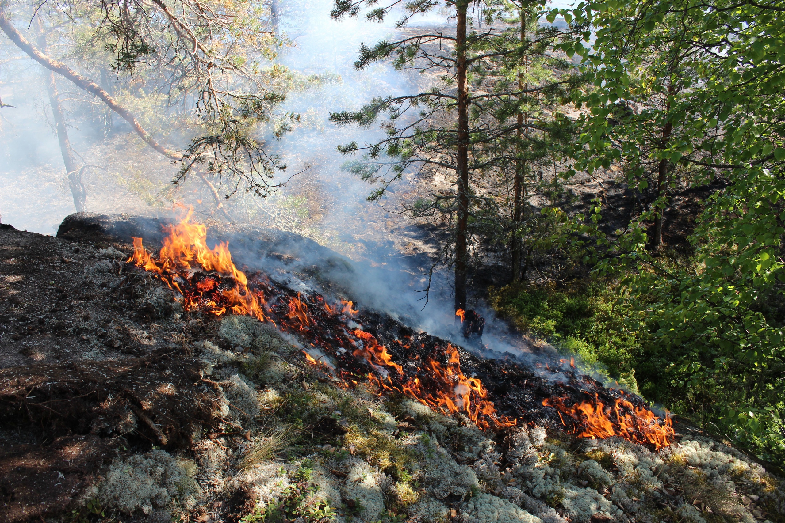— На островах Ладоги — небольшой слой почвы, которая сформирована хвойными породами деревьев: сосной и елью. Почвенный состав похож по своему поведению на торф — иголки долго разлагаются и хорошо поддерживают тление. Получается, что пожарным нужно не просто сбить открытый огонь, а хорошо его пролить по всему периметру. Если пожар большой, то необходимо делать локализацию по кромке, чтобы он не развивался дальше, иначе через день-два всё возобновится. К сожалению, у нас есть подтвержденный опыт таких историй.