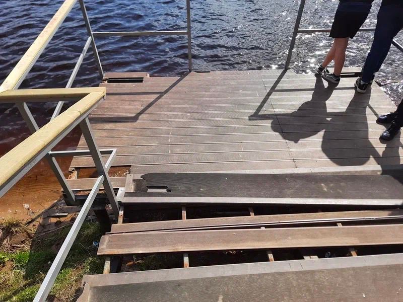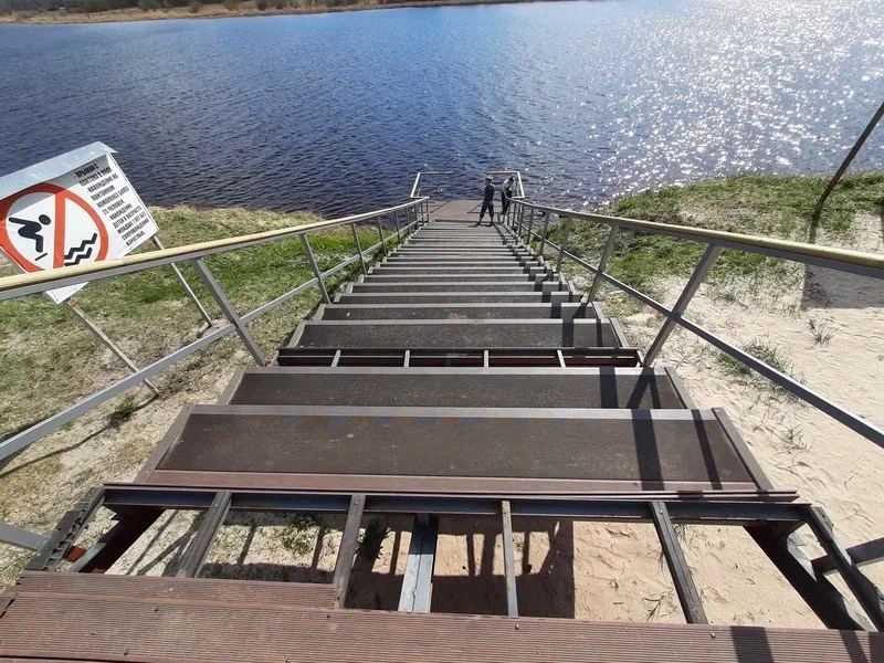 • Лестница, ведущая к побережью реки Сясь, уже разрушилась и стала опасной — в ее ступеньках видны дыры.