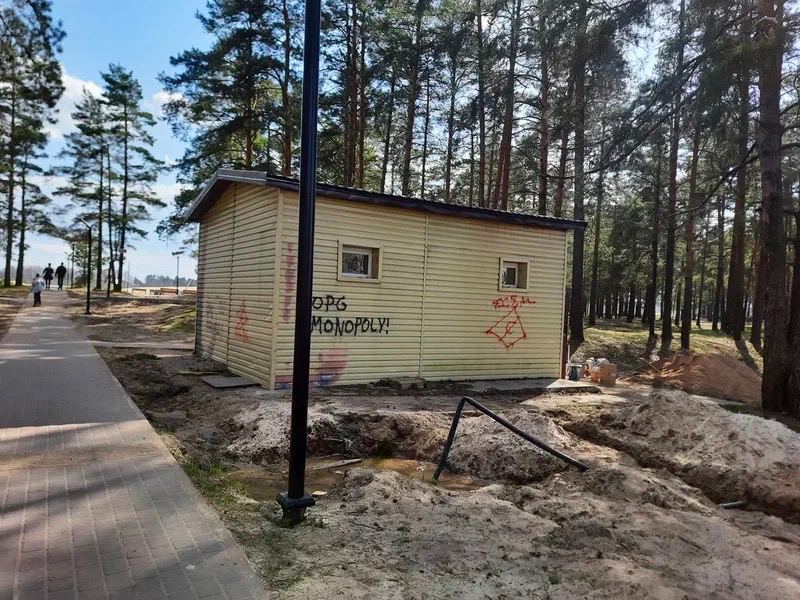 • Активисты рассказывают, что туалет в «Сосновом бору» не работает. В начале весны парк затопило водой из канализации.