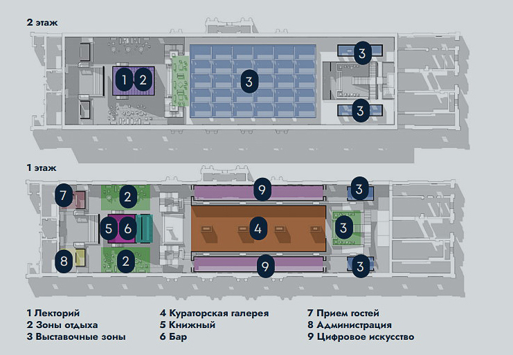 Для организации арт-ярмарки задействуют все площади выставочного зала, говорится в презентации. Экспозиционная площадь составит около 2,5 тысячи квадратных метров, а участникам предложат стенды площадью в 20 и 40 квадратных метров. Кроме того, на первом этаже планируют открыть книжный магазин, бар, кураторскую галерею и секцию цифрового искусства, а на втором — лекторий от школы Masters.