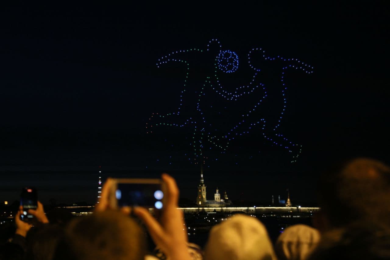 «Бумага» показывает, как фестиваль дронов выглядел с Дворцового моста — в трех фото.