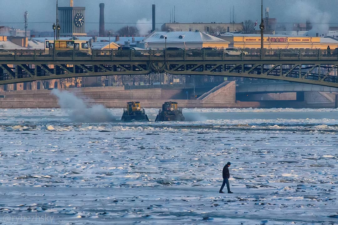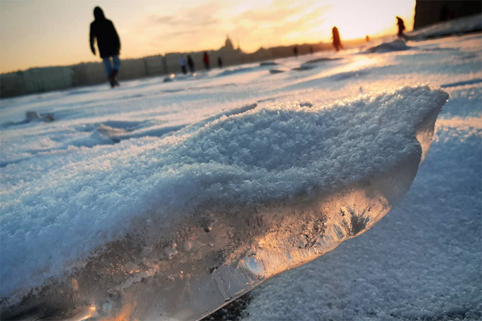 Некоторые петербуржцы отправились гулять по льду, несмотря на то, что до 15 января это запрещено. Особенно много людей было у Петропавловской крепости.
