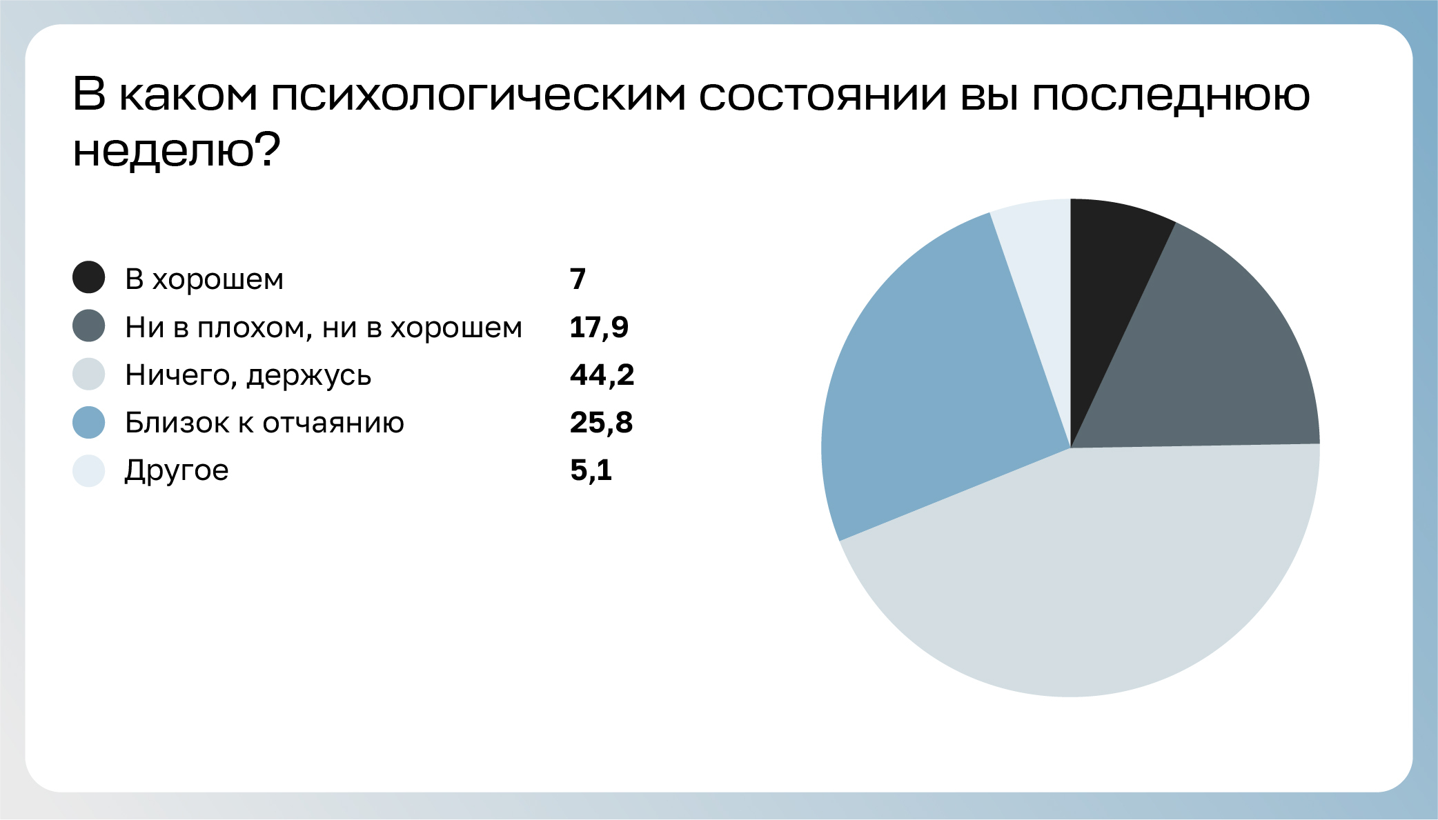 Последнюю неделю в хорошем состоянии находятся только 7 % тех, кто прошел опрос.