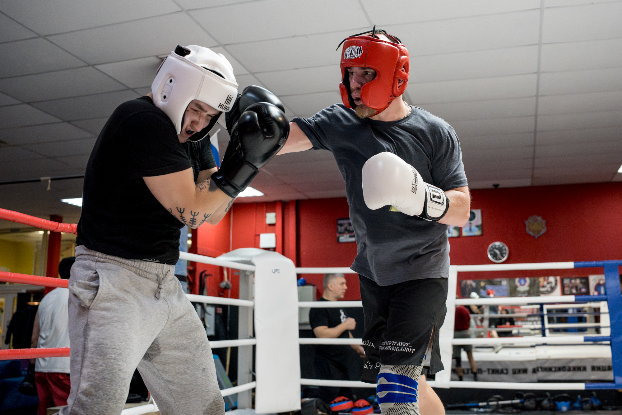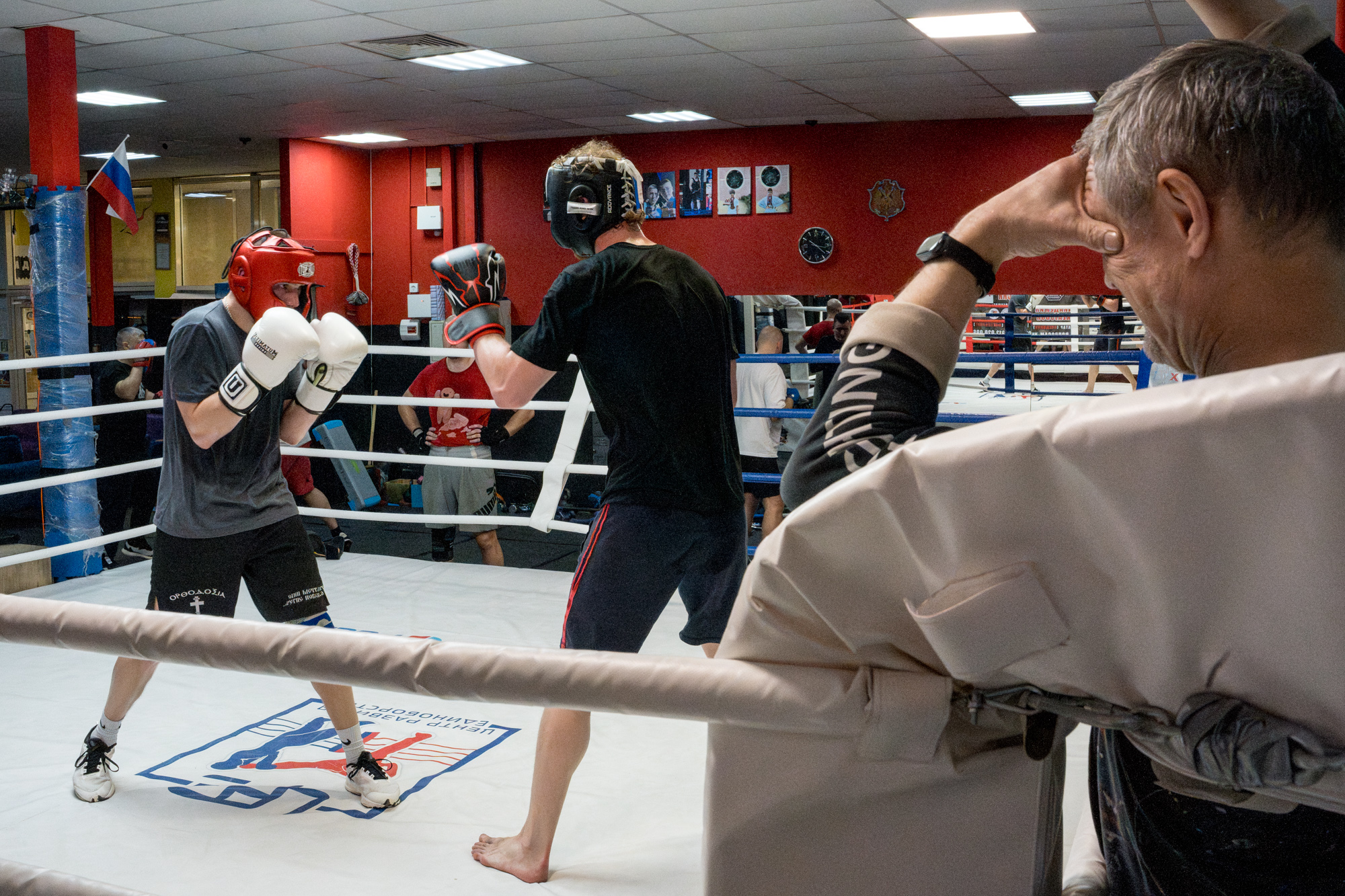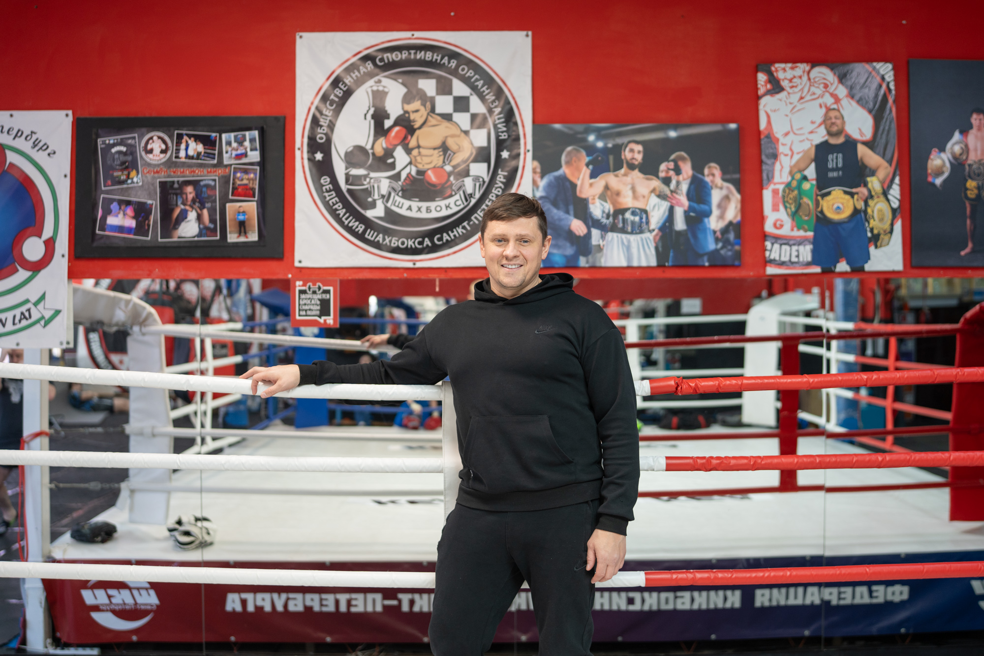 В зале единоборств KEA Fighting у метро «Беговая» в полдень буднего дня тренируется пара десятков спортсменов, среди которых как крупные мужчины сорока-пятидесяти лет, так и школьники, самым маленьким из которых по восемь-девять лет. От стандартного спортклуба этот отличается расставленными у ринга и между боксерских груш шахматными досками. Здесь тренируется сборная Ленинградской области по шахбоксу — гибридному виду спорта, в котором шахматные партии чередуются с боксерскими поединками.