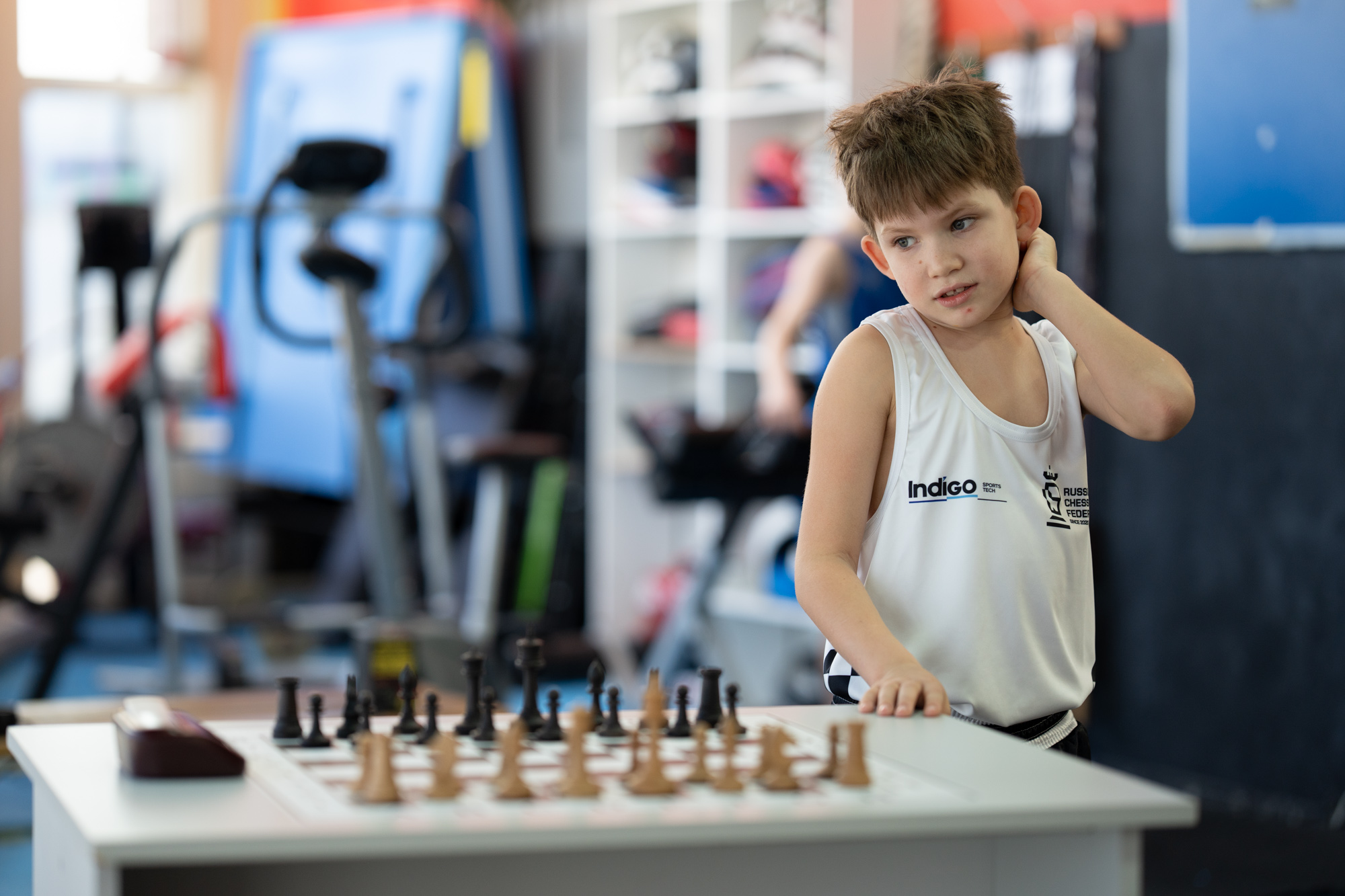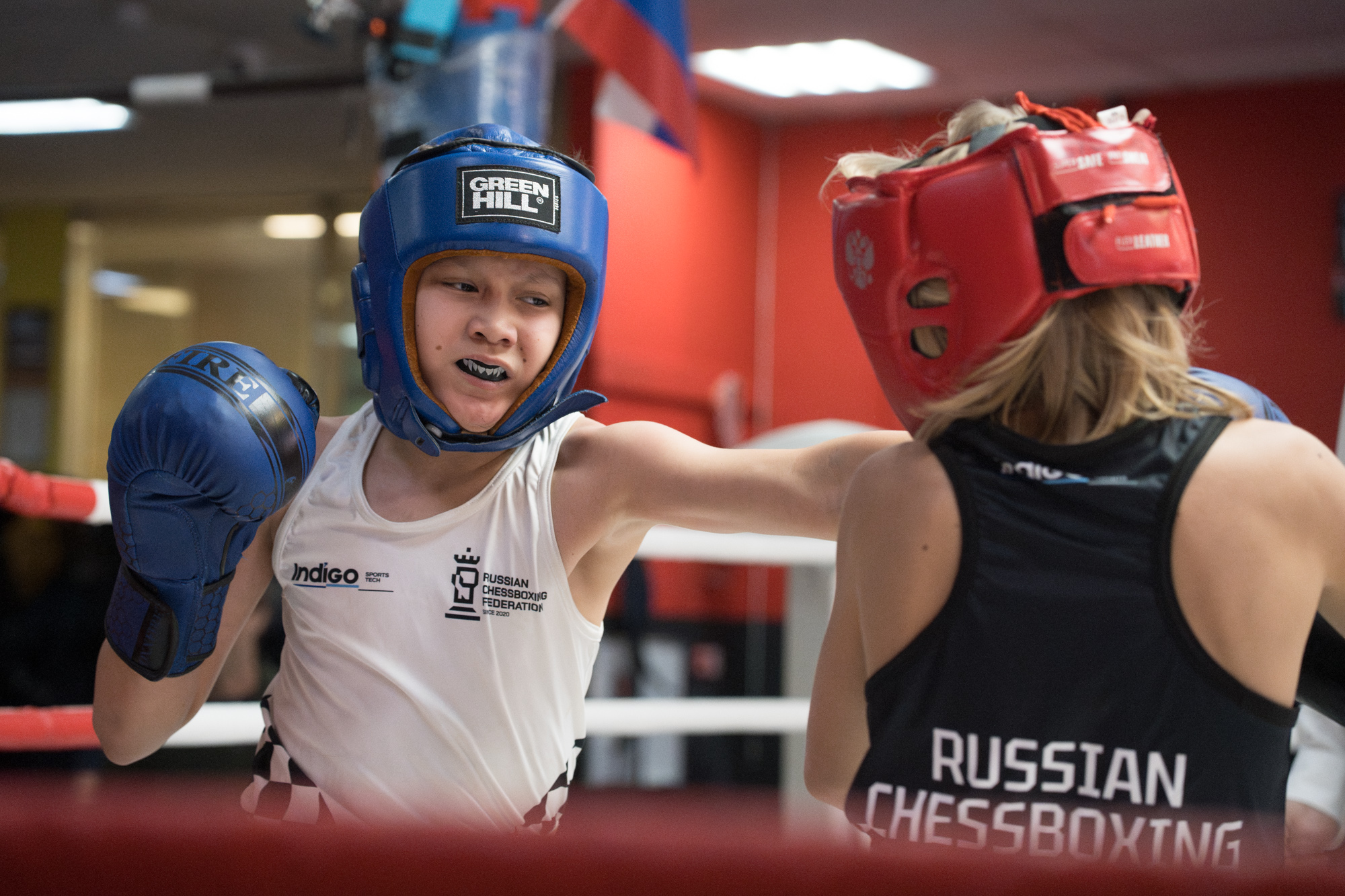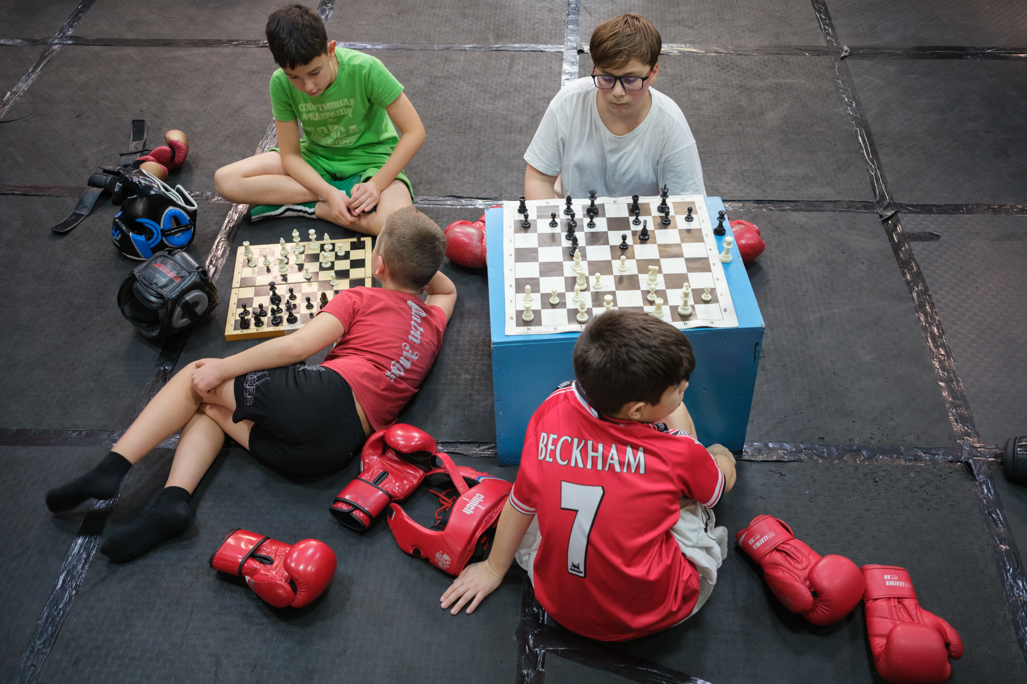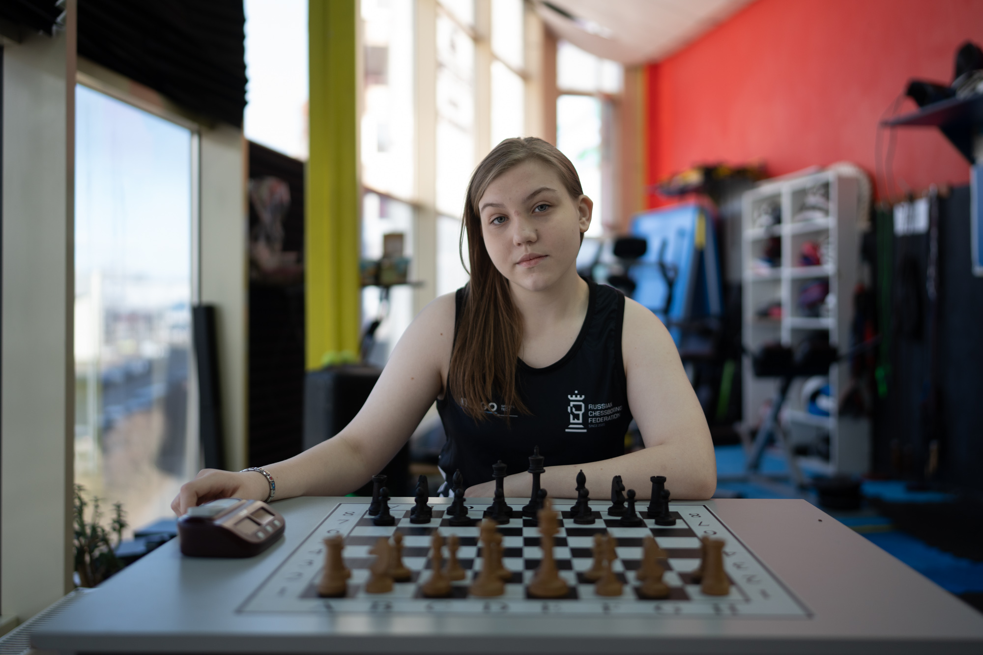 В углу зала разыгрывают шахматную партию два пятнадцатилетних чемпиона России по шахбоксу — Ян и Ксения. Недавно молодые люди вернулись с соревнований в Москве, где Ксения во второй раз стала чемпионкой страны, а Ян выиграл бронзовую медаль. Подростки — базовые кикбоксеры, занимались этим единоборством с раннего детства, а в шахматы, когда пришли в шахбокс в 2023 году, играть не умели. С тех пор с Яном и Ксенией регулярно занимался их личный тренер по шахматам, который за полгода вывел подростков с нулевого уровня на спортивный. Яну в шахбоксе больше нравятся шахматы, а Ксения предпочитает бокс.